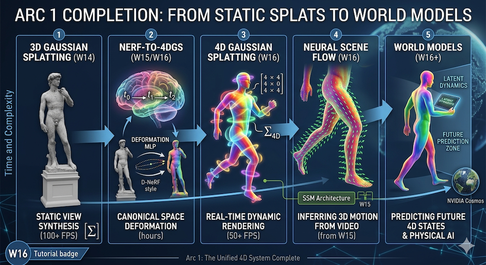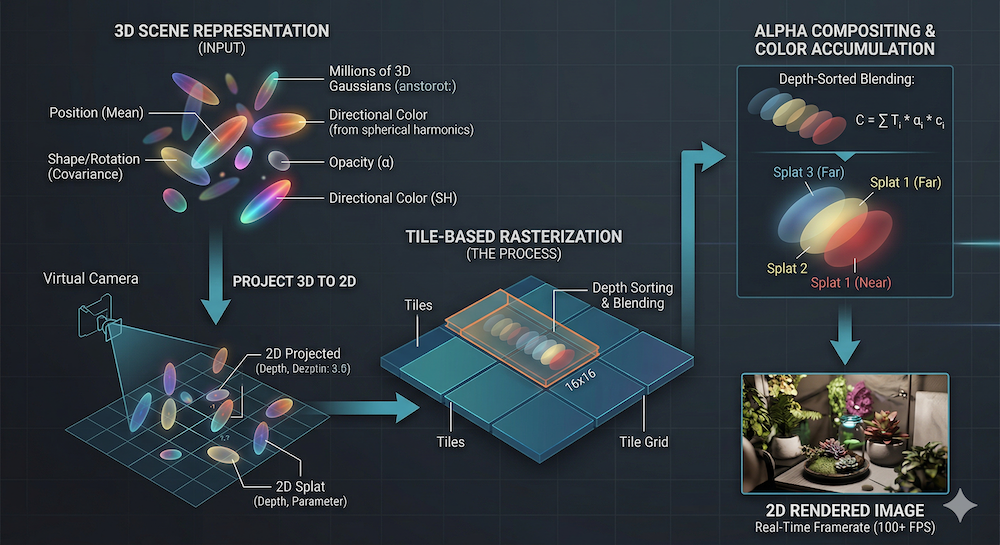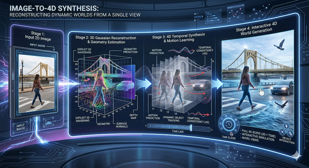 A step-by-step introduction to 4D Gaussian Splatting — how adding a time dimension to 3DGS enables real-time dynamic scene rendering, from deformation fields to temporal regularization.